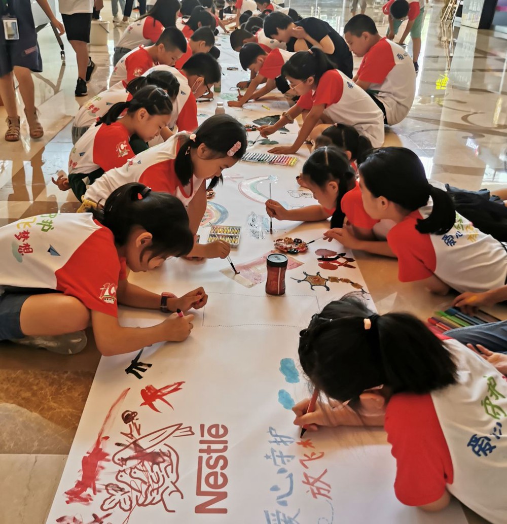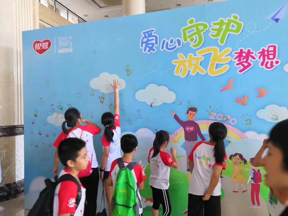 “梦想画布”是今年的特别环节,,,,意在让孩子们放松身心,,,,放飞梦想。。活动现场,,,,孩子们领用各种画笔,,,,在工作人员的引导下,,有序围在画布两旁开始作画,,,各显身手尽情地涂抹挥洒。。