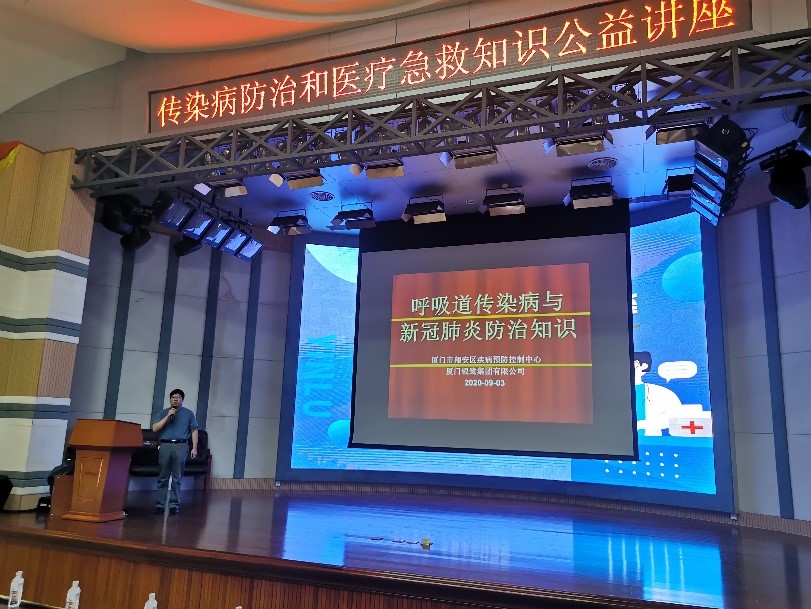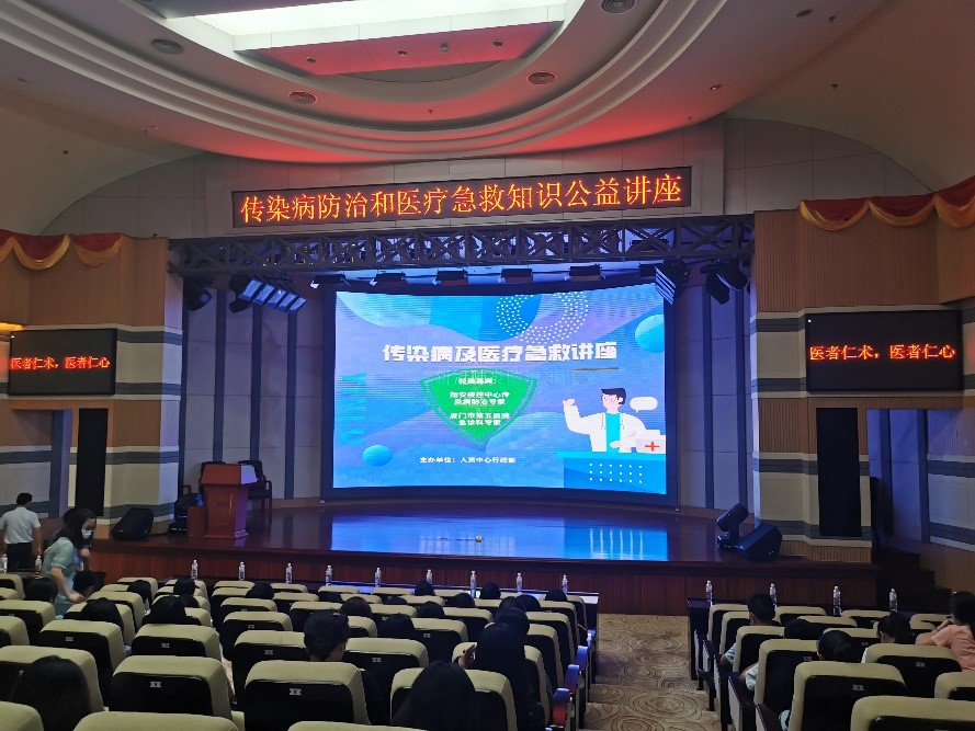讲座于9月2日下午在总部3F大礼堂进行,,翔安区疾控中心传染病防治专家叶医师、、厦门市第五医院急诊科张护士及其团队为大家授课。。。。