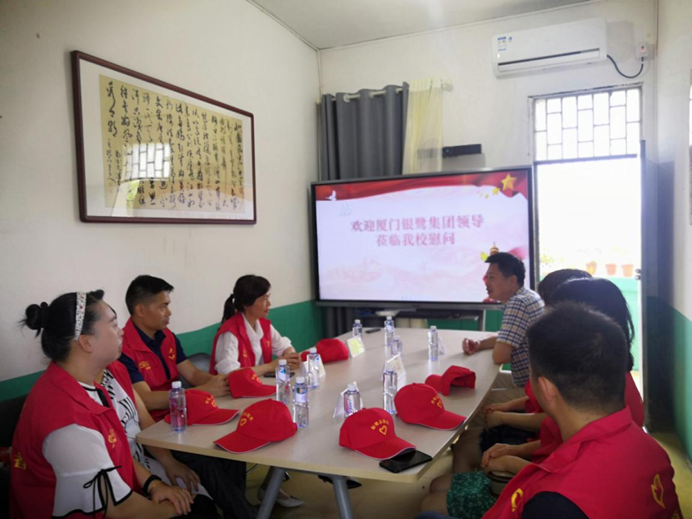 翔安区特教学校,,,李校长简要介绍了学校的教学基本情况和对未来工作的设想,,,感谢尊龙时凯企业多年来一直对学校的关心和帮助。。他提到,,他正着手推动有关部门筹建“启航小镇”的建设,,,,把它打造成特殊群体生活就业的乐土,,,,爱心超市,,,,爱心书屋、、、、爱心小吃……让这些人回归社会后,,,能够找到自信,,,,独立而有尊严的生活。。。