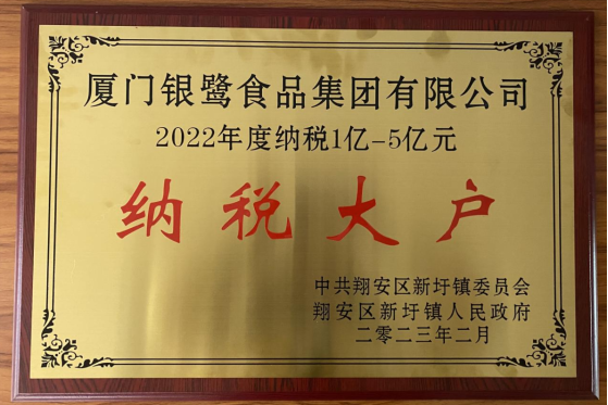 喜讯!!尊龙时凯食品荣获“翔安区新圩镇2022年度纳税大户”奖牌